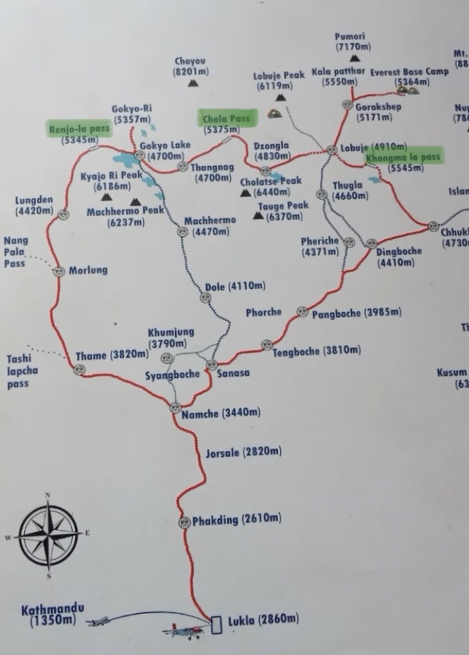 The Kongma La Pass is the first of the three passes, demanding a steep ascent and descent. As you conquer this pass, panoramic views of Everest, Lhotse, and Ama Dablam await.